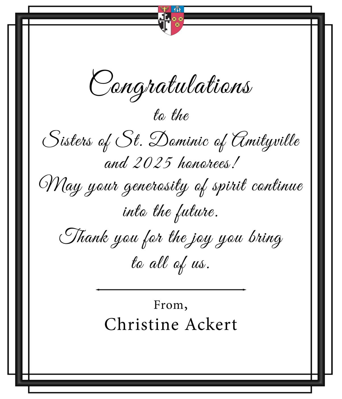 David Koehler manages The Koehler Organization, a well-respected presence within Long Island’s construction industry for more than seventy years. A faith-filled upbringing has instilled in David a genuine concern for others, as witnessed by many generous philanthropic commitments. It is precisely this dedication to service that led to an affiliation with the Dominican Sisters of Amityville. The Koehler Organization built Kinder Towne for the Sisters in 2000. David has served on the Financial Advisory Task Force for the Sisters, served on numerous Dominican Gala Committees, and helps support every major giving campaign.