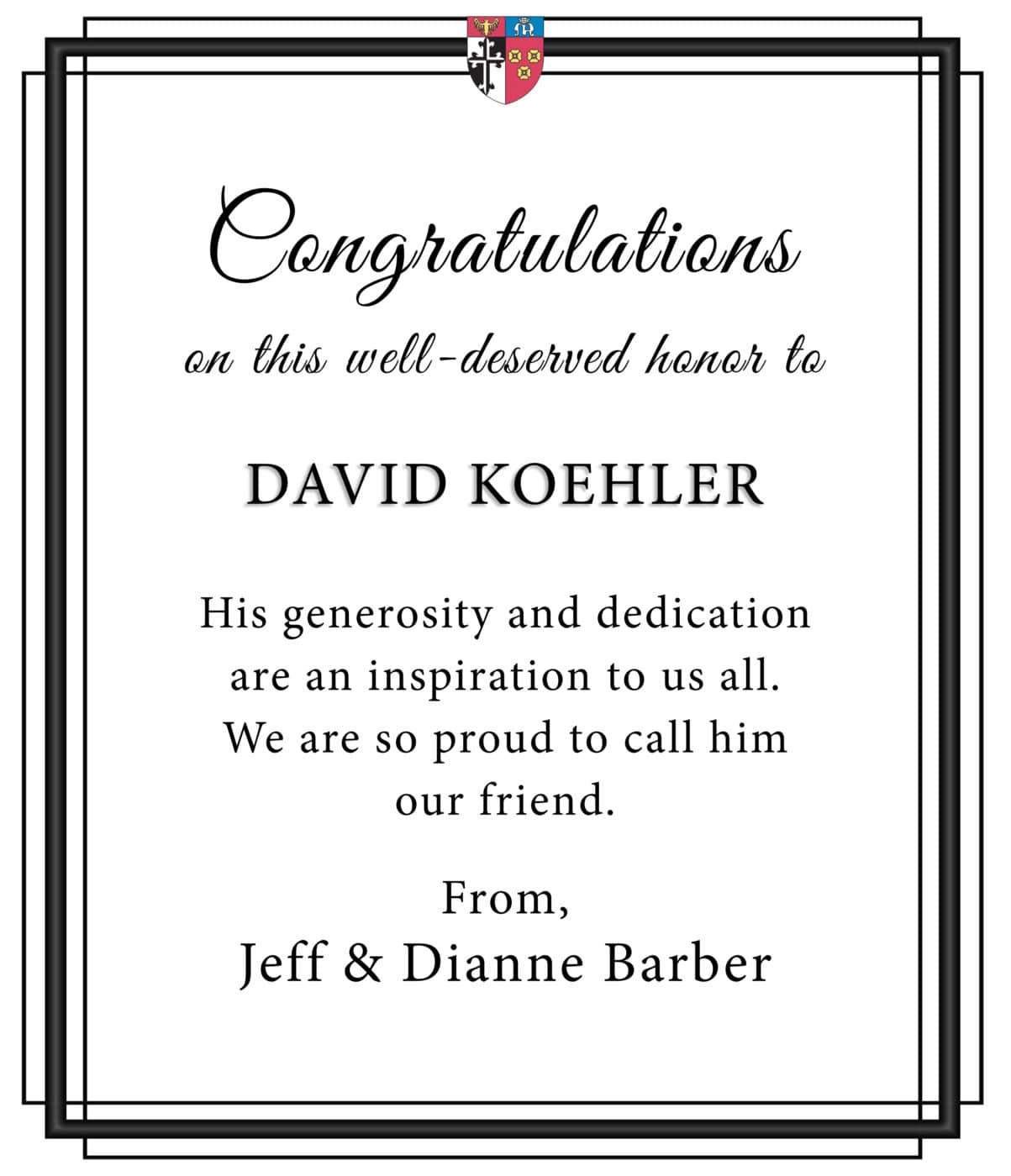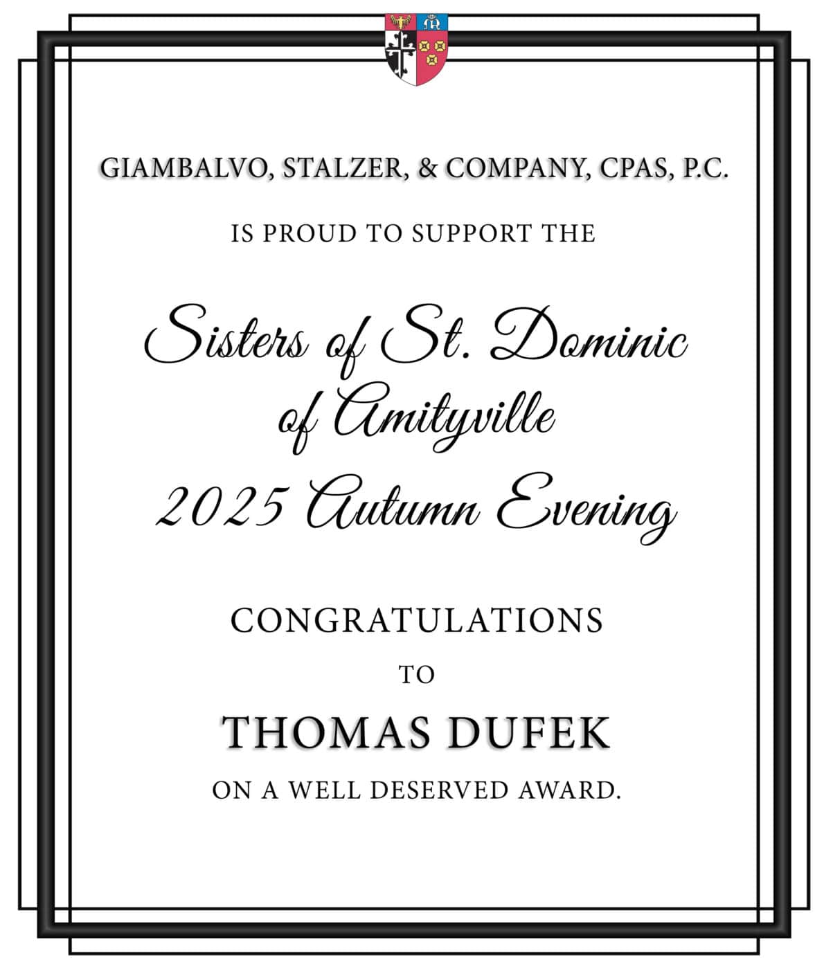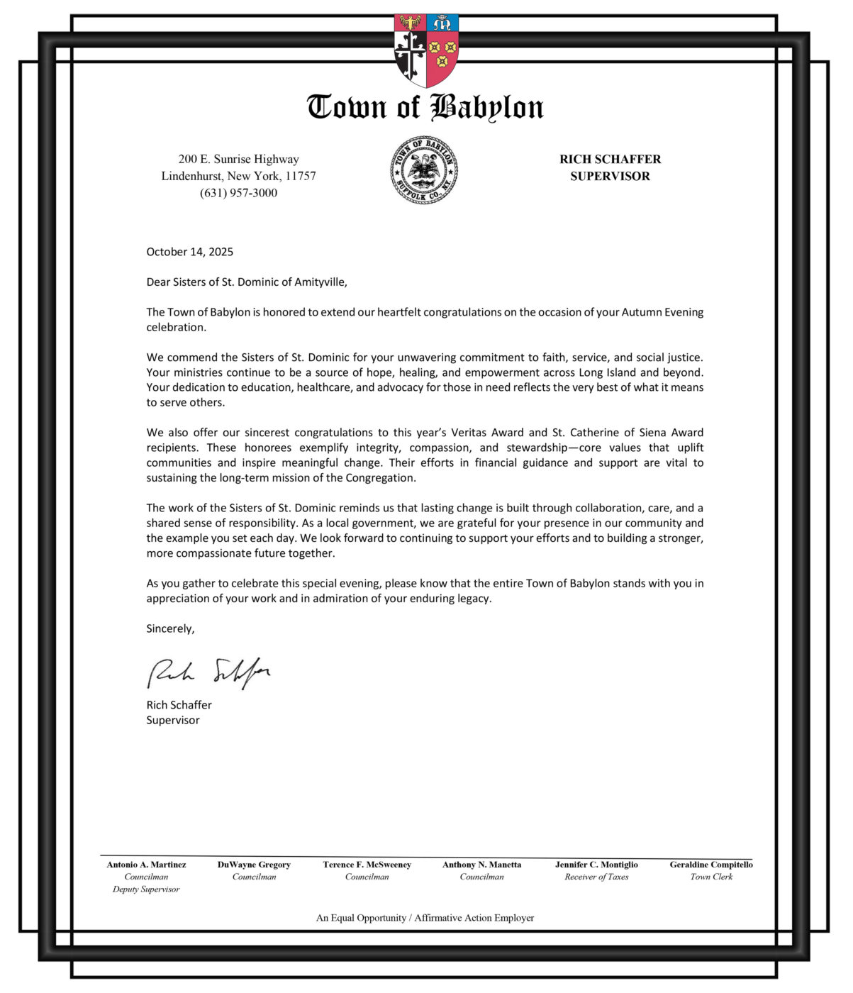 Some of his previous affiliations include serving as Past Chairman of the Nassau County Chapter of the American Red Cross, the Long Island Group of New York Bankers Service Corporations, and the Archbishop Molloy High School Board.
