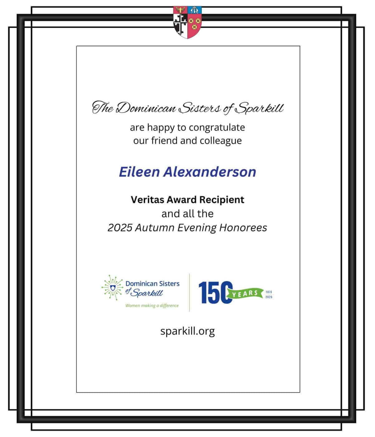 For her years of service and contributions to the Church on the Finance Committee of the Diocese of Rockville Centre, she received the Bishop's Council Award. Additionally, Sister Kathleen offered her expertise to the National Religious Resource Center (NRRC) as a consultant to other religious congregations and was a member of the Finance Committee and Board of the Leviticus Fund.